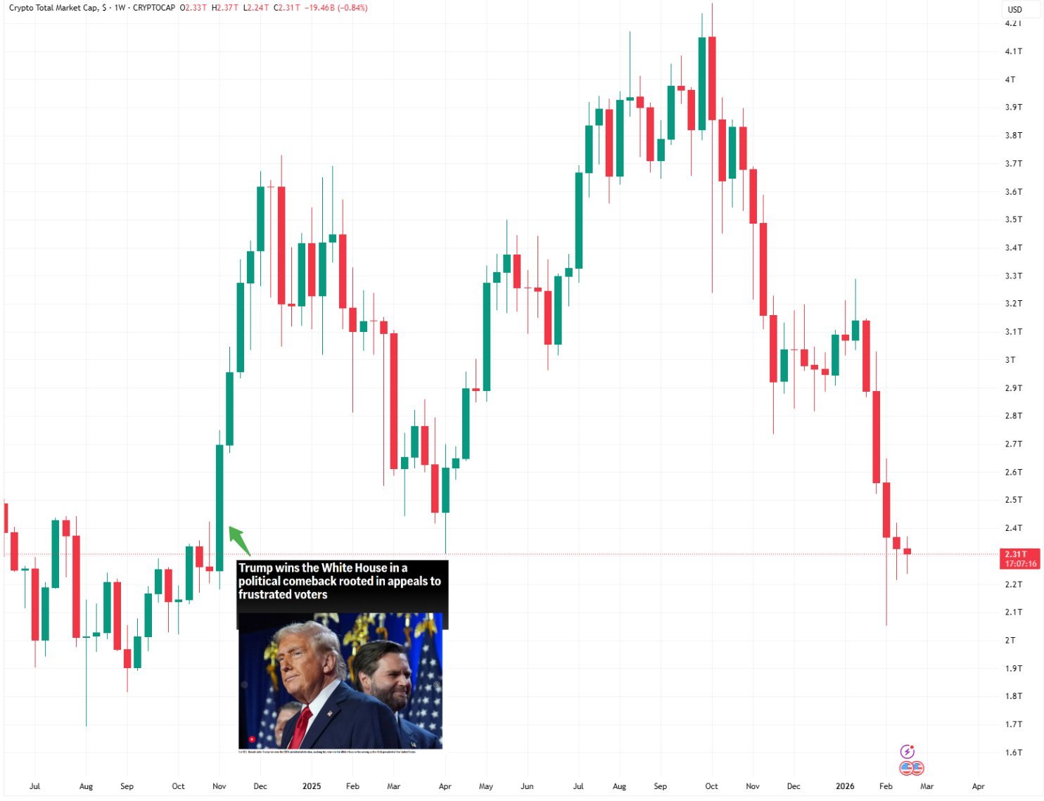 Το αποτέλεσμα ήταν σαφές: το crypto market cap γύρισε στα επίπεδα πριν από το εκλογικό ράλι, σαν να μην είχε συμβεί ποτέ.