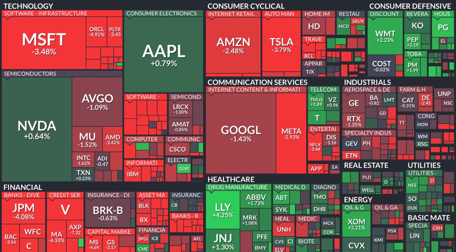 Η διόρθωση δεν ήταν απλώς μια «κακή μέρα». Ο βιομηχανικός δείκτης Dow Jones Industrial Average κατέγραψε απώλειες άνω των 800 μονάδων σε μία συνεδρίαση, ενώ ο S&P 500 και ο Nasdaq Composite υποχώρησαν αισθητά, με τον τεχνολογικό κλάδο να δέχεται το μεγαλύτερο πλήγμα.