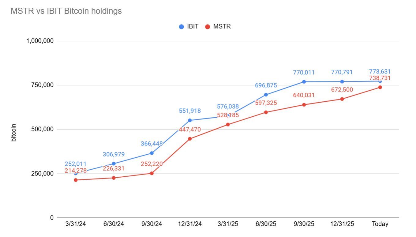 Αυτό που κάνει την κατάσταση ακόμη πιο εντυπωσιακή είναι ότι το IBIT αποτελεί ETF που συγκεντρώνει κεφάλαια από χιλιάδες θεσμικούς και ιδιώτες επενδυτές, ενώ η Strategy είναι μια μεμονωμένη εισηγμένη εταιρεία που συσσωρεύει Bitcoin μέσω εταιρικού ισολογισμού.