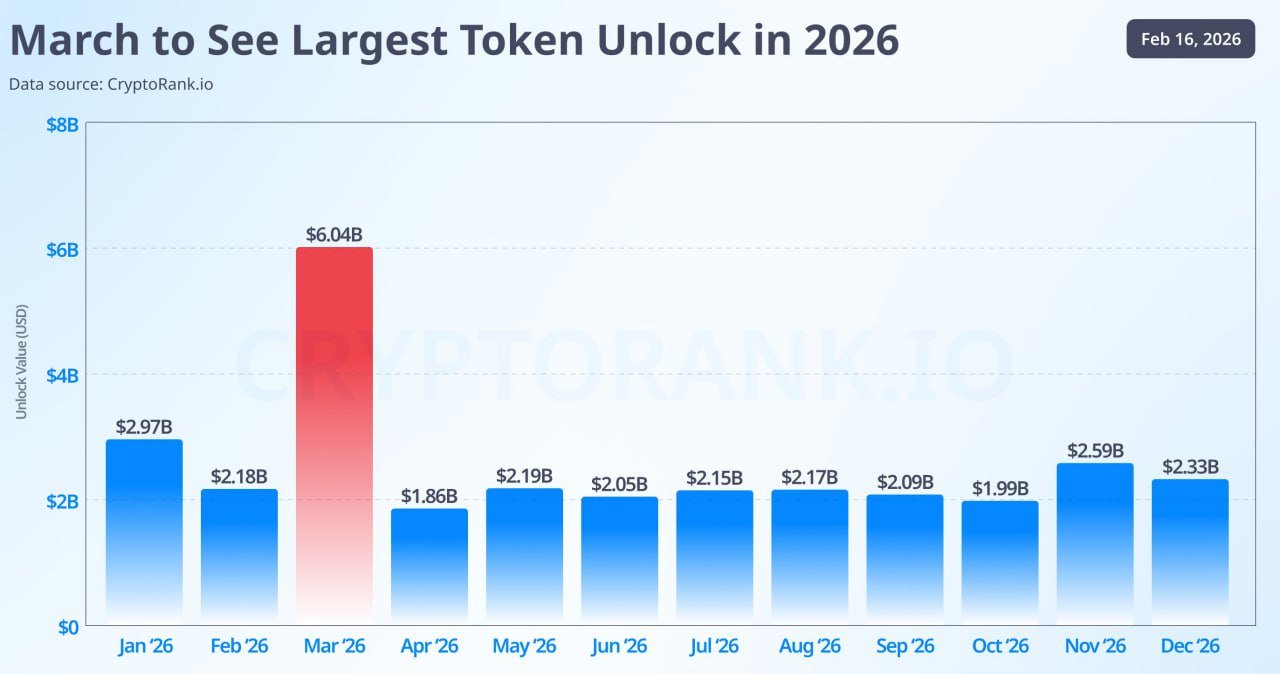 Ο Μάρτιος του 2026 εξελίσσεται ήδη στον πιο «βαρύ» μήνα της χρονιάς για την αγορά των crypto. Σύμφωνα με συγκεντρωτικά στοιχεία από πλατφόρμες παρακολούθησης token unlocks, περισσότερα από $6 δισ. σε tokens πρόκειται να απελευθερωθούν μέσα σε έναν μόνο μήνα. Το ποσό είναι περίπου τρεις φορές υψηλότερο από τον μέσο μηνιαίο όρο του 2026, ο οποίος κινείται κοντά στα $2 δισ..