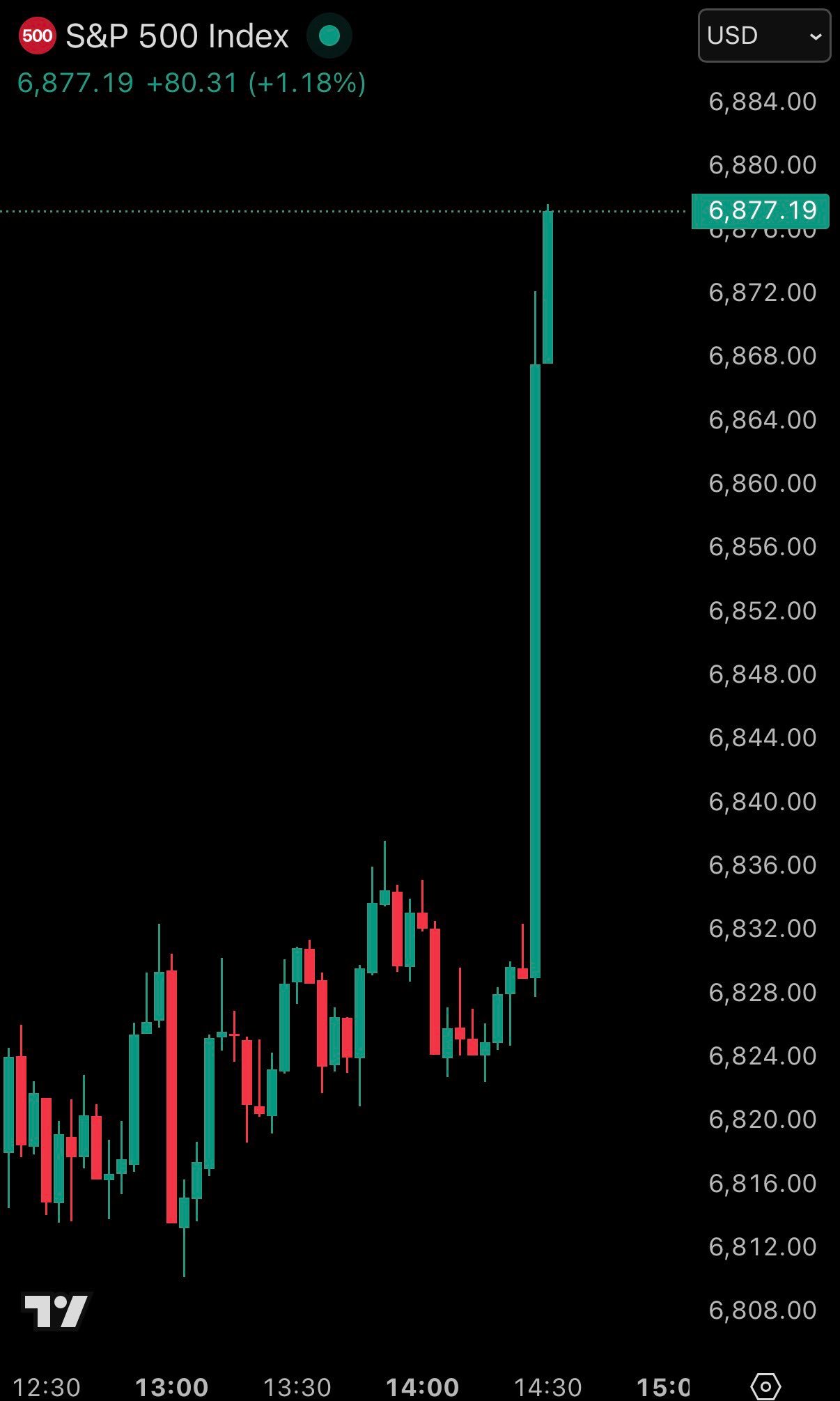 Το γράφημα που κυκλοφόρησε λίγα λεπτά μετά τη δήλωση είναι χαρακτηριστικό. Ένα συνεχόμενο πράσινο κερί σχεδόν χωρίς ανάσα, που διασπά ζώνες προσφοράς και σπρώχνει τον δείκτη κοντά σε νέα τοπικά υψηλά.