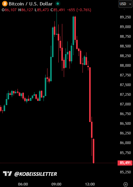 • Το Bitcoin έχασε πάνω από $3.700, πέφτοντας από τα $89.363 στα $85.640