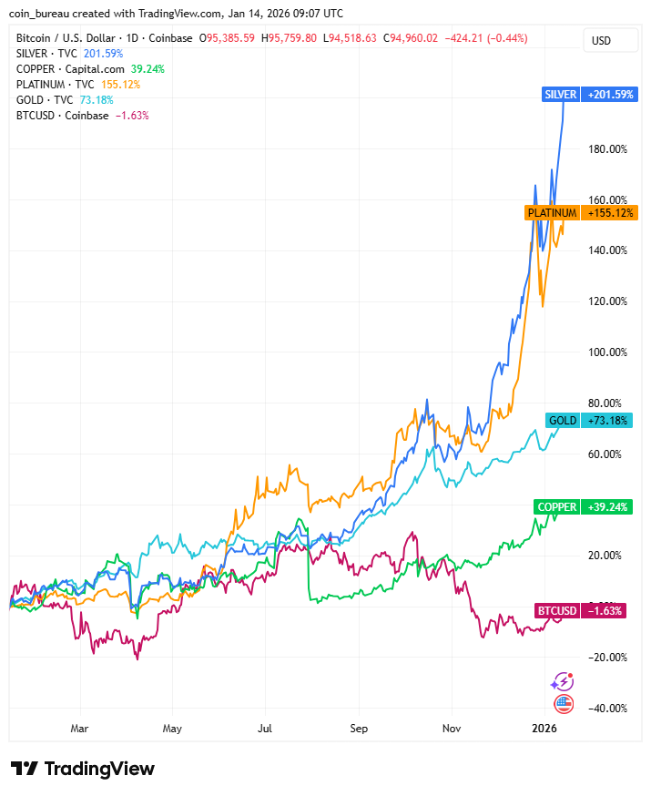 Παρά το έντονο bullish κλίμα, αξίζει μια σημαντική διευκρίνιση. Τα εντυπωσιακά ποσοστά ανόδου που κυκλοφορούν ευρέως στα social media δεν αφορούν αποκλειστικά τις πρώτες εβδομάδες του 2026. Πρόκειται κυρίως για αποδόσεις σε ορίζοντα περίπου ενός έτους, και όχι για καθαρό year-to-date performance.