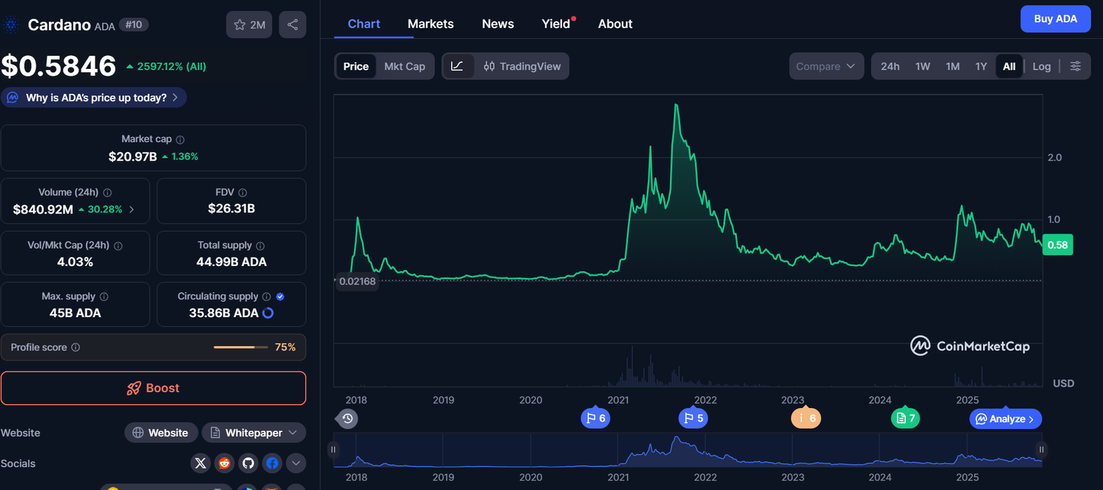 Η τιμή του ADA κινείται γύρω από τα $0,60, με αρκετούς τεχνικούς αναλυτές να βλέπουν πιθανή ανοδική διάσπαση προς το $1,20 αν υπάρξει όγκος και momentum μετά το Summit.