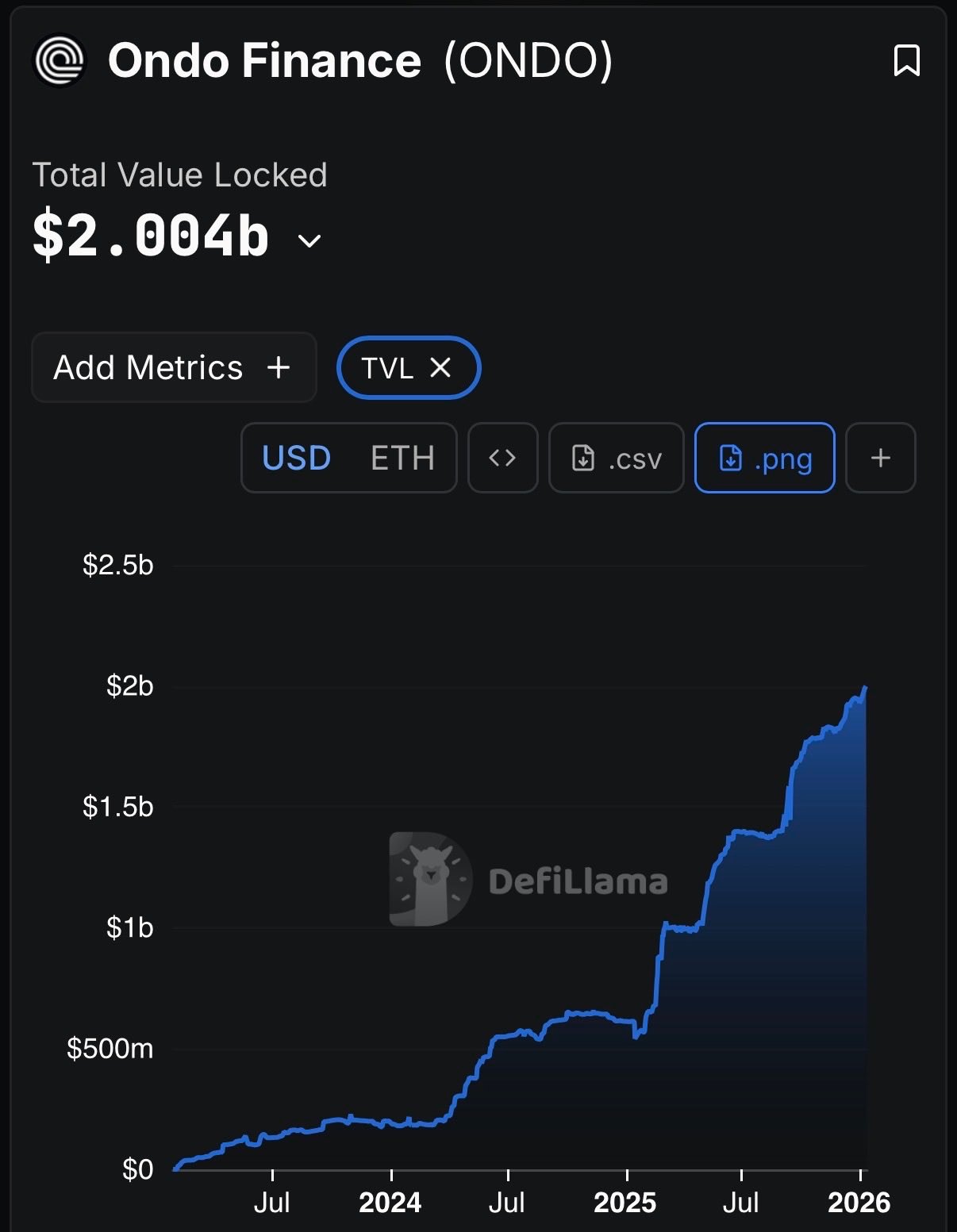 Ondo Finance TVL surpasses 2 billion dollars as tokenized real world assets grow on blockchain