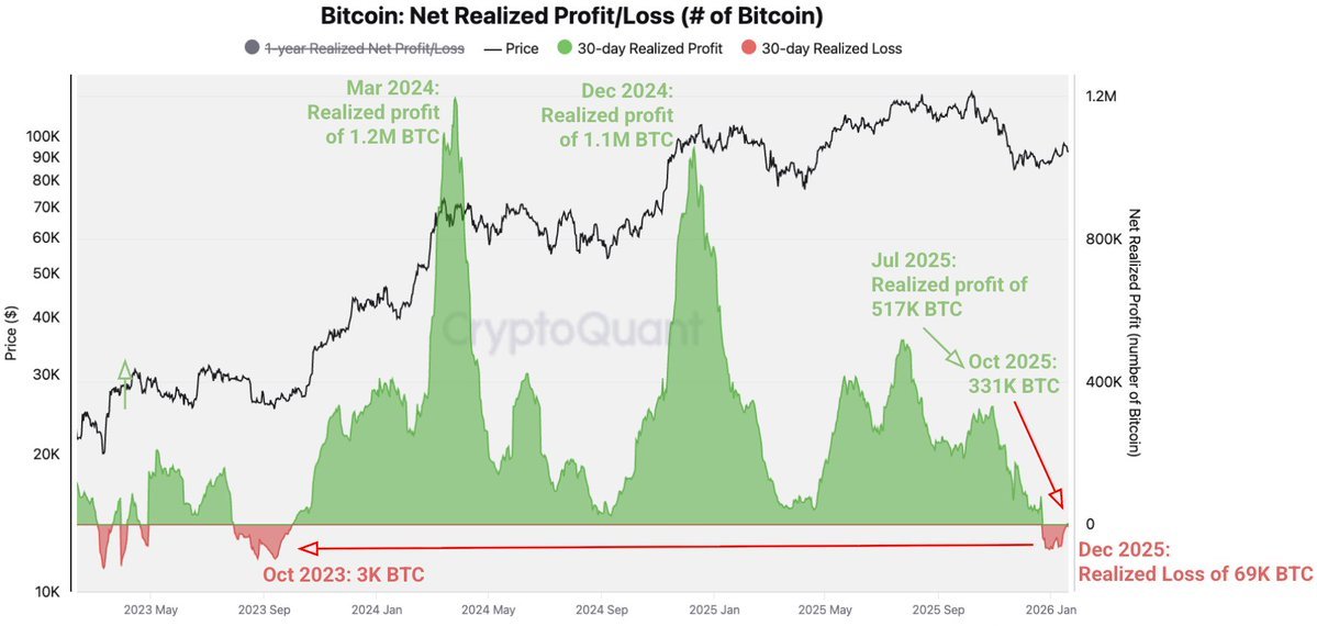 Bitcoin net realized profit loss chart showing investor losses and warning signals similar to the 2022 bear market